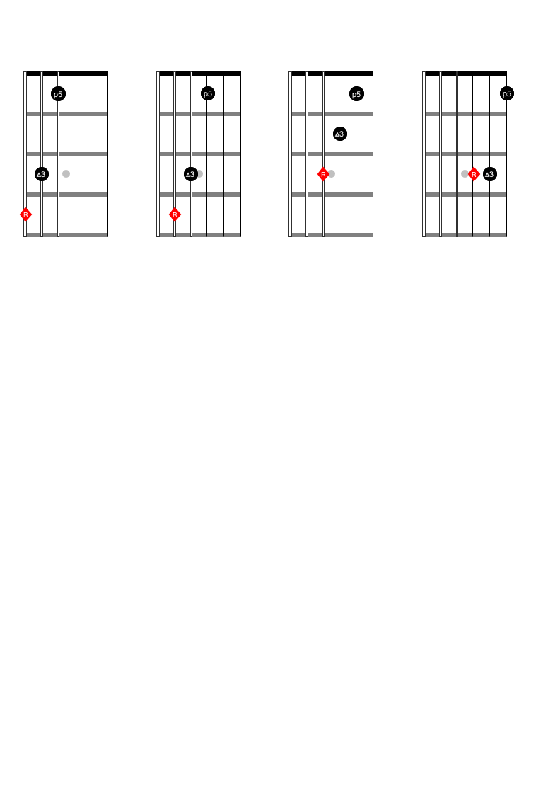 Major triads on guitar